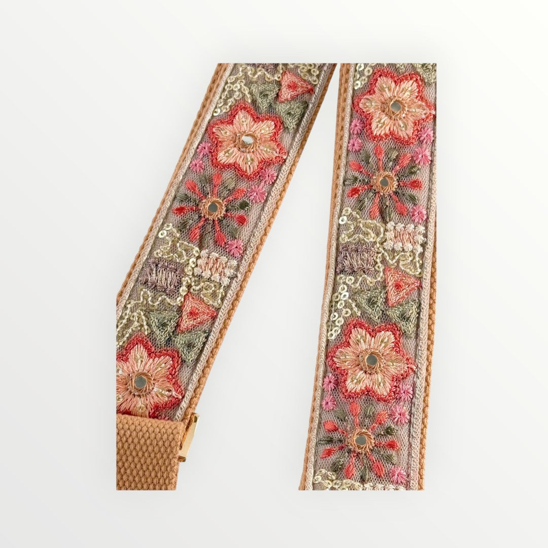 Transform your favorite bag with this exquisite handcrafted replacement strap. Featuring intricate embroidered floral detailing set against a premium woven base, this strap combines artisanal craftsmanship with everyday functionality.