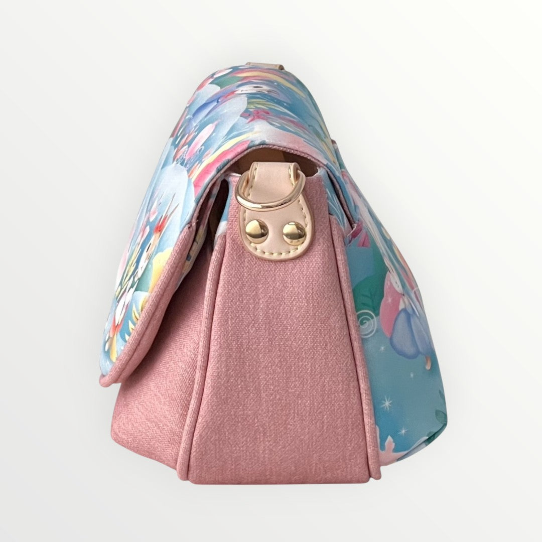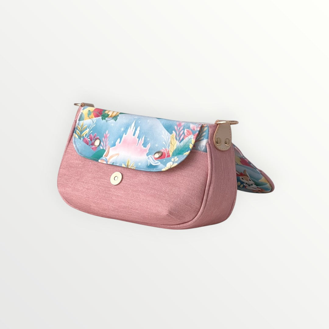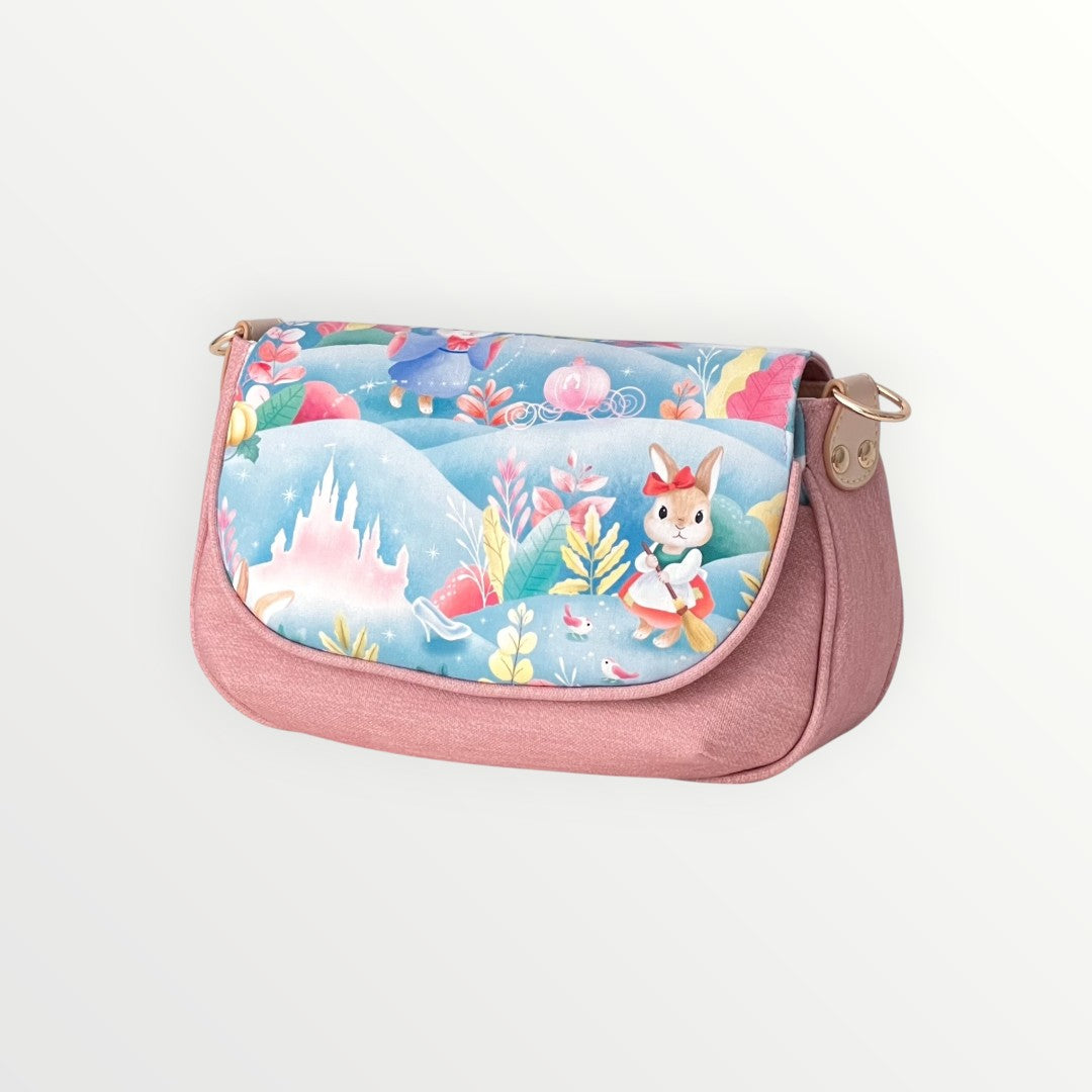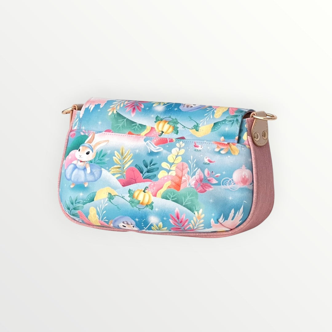 Step into a fairytale with the Enchanted Bunny Saddle Bag, where glass slippers, castles, and pumpkin carriages come to life in a dreamy landscape of pastels and sparkle. Inspired by the classic tale of Cinderella, this charming design features a sweet bunny heroine ready for her own magical adventure.