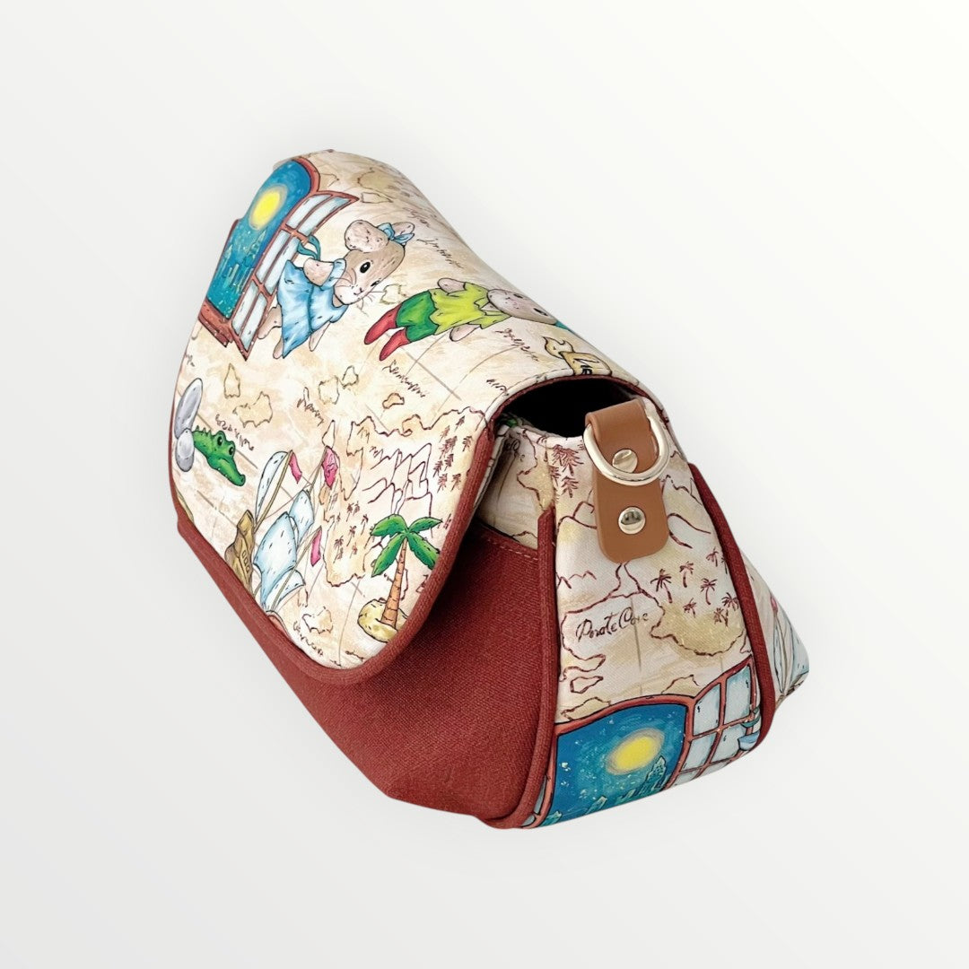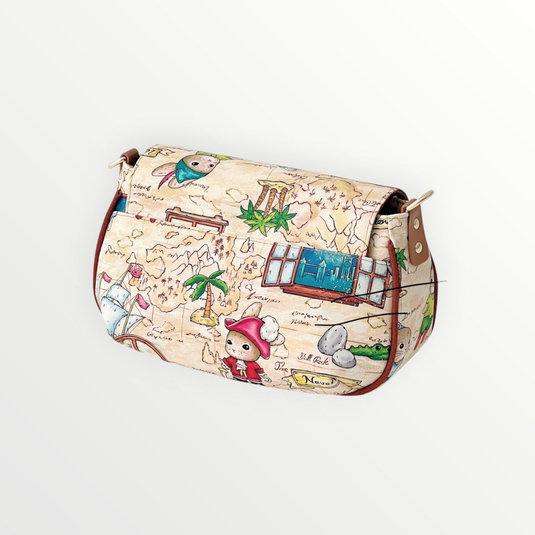 Fly off to a world of imagination with the Peter Bunny Saddle Bag, where maps, pirate ships, and playful bunny characters bring the spirit of Neverland to life. Inspired by the timeless tale of Peter Pan, this unique bag captures adventure, wonder, and just the right touch of childhood nostalgia.