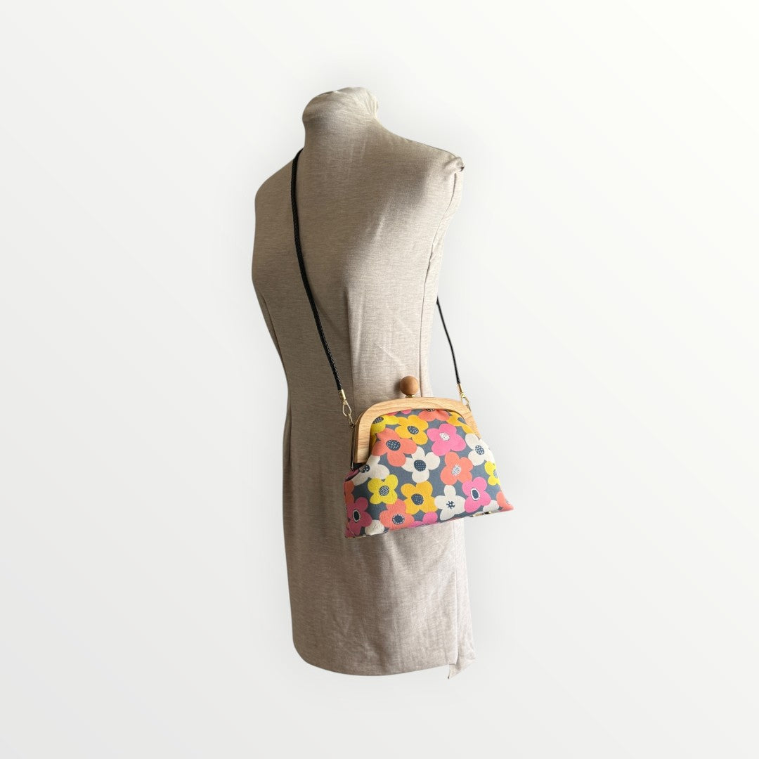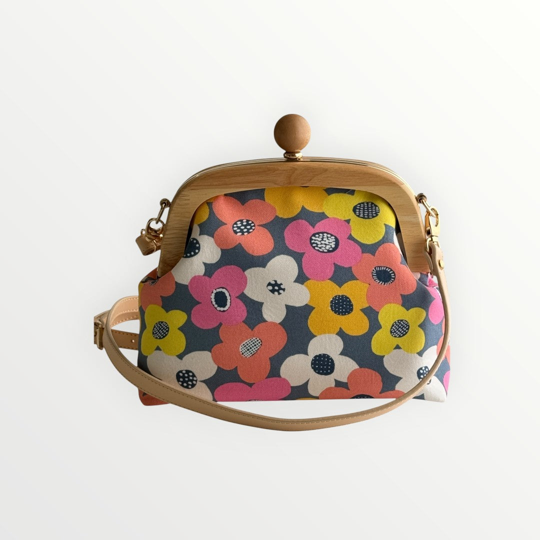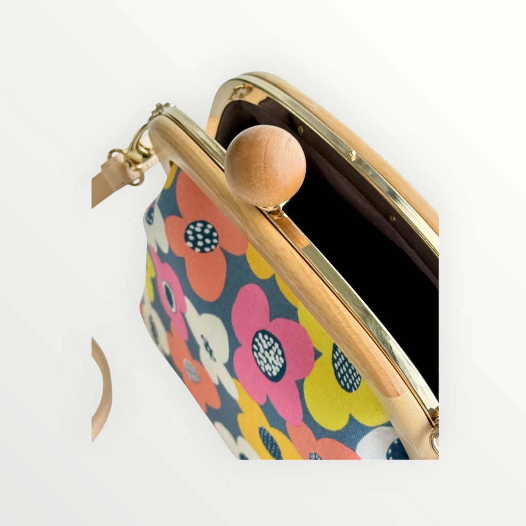Cheerful, bold, and irresistibly charming—the Sunny Flower Kisslock Bag brings a pop of color and joy to your daily look. Featuring a playful floral print and a smooth wooden frame with a ball clasp, this bag is as much a statement piece as it is a functional companion.