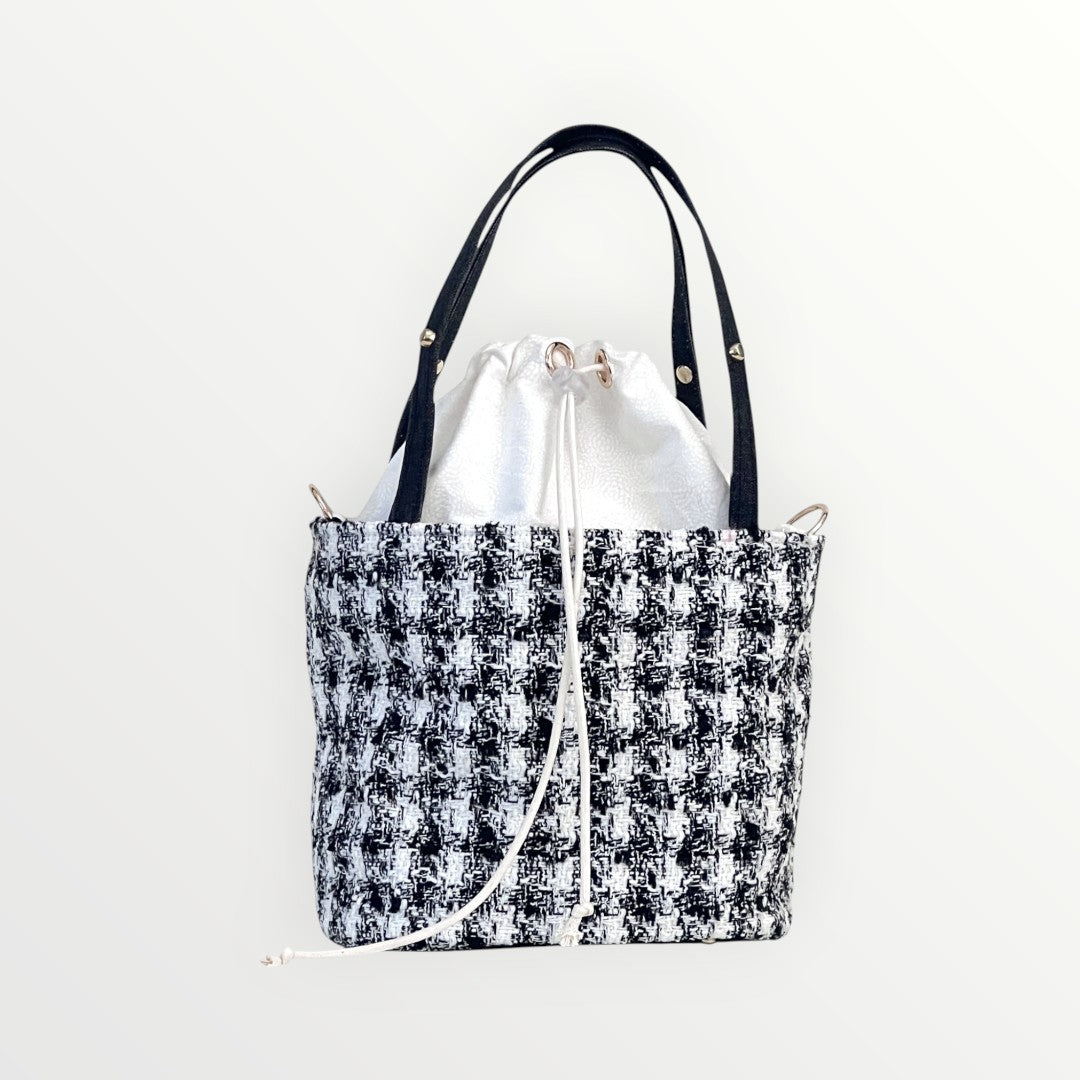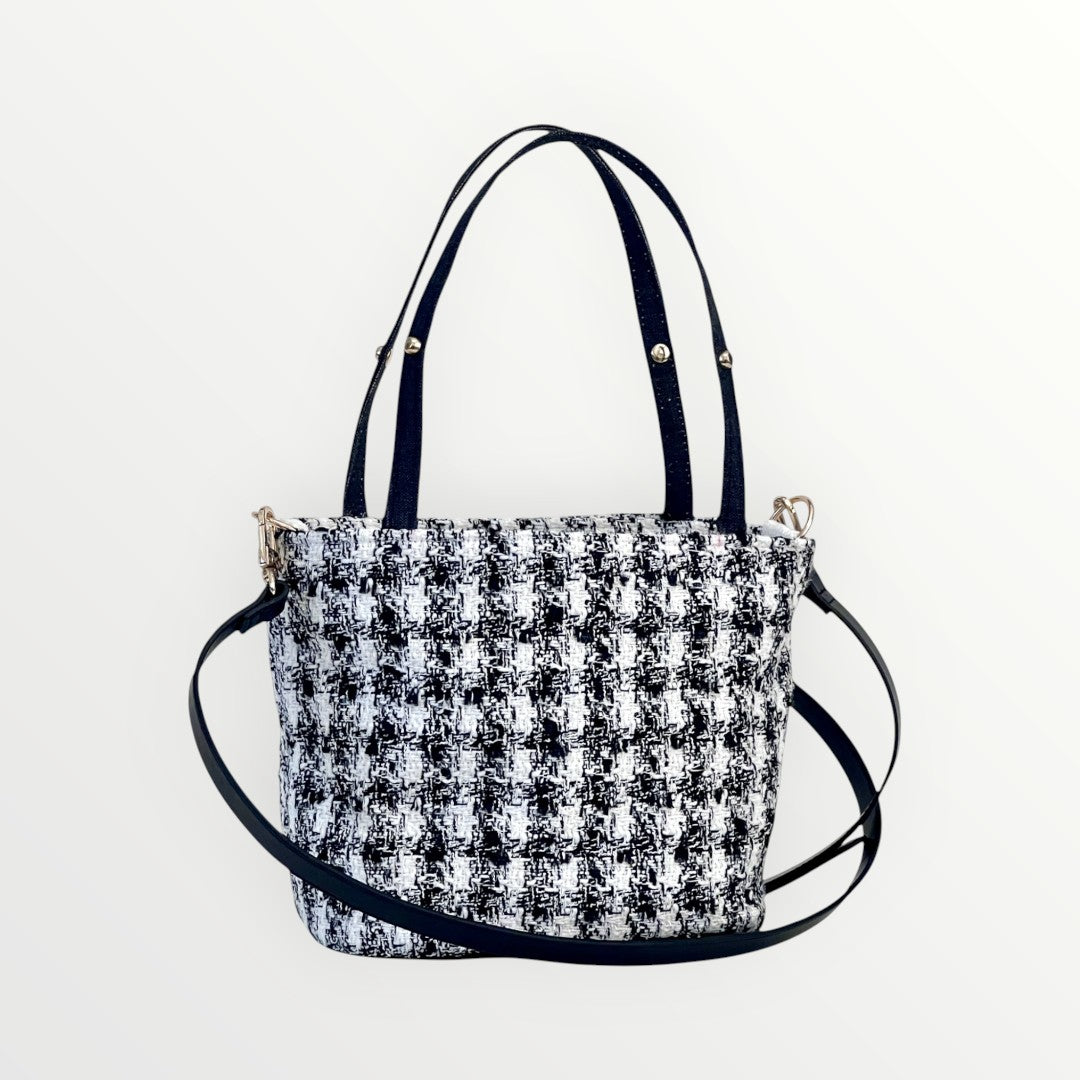 • Timeless Palette: The black-and-white tweed-inspired exterior is chic, versatile, and made to pair with anything.