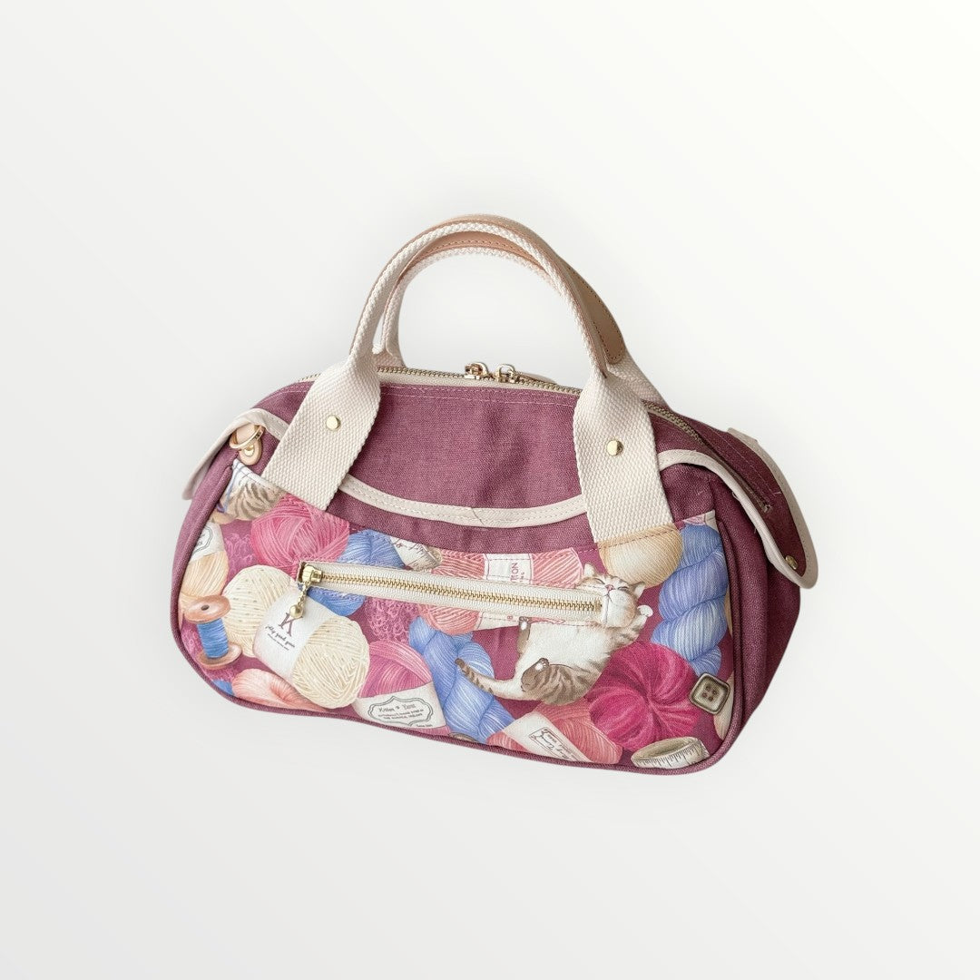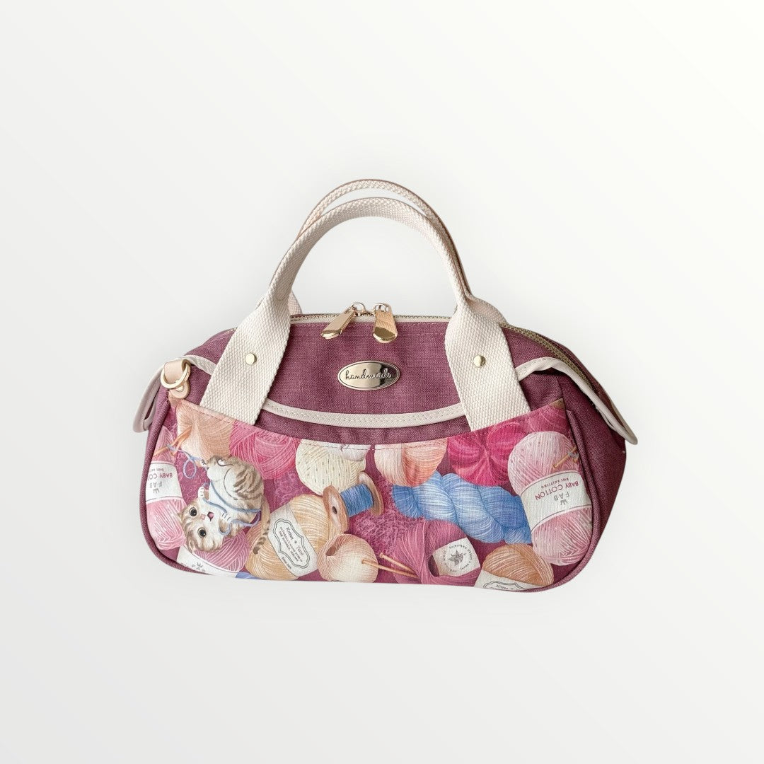 Celebrate the cozy charm of crafting and cats with the Kitten Knits of our bowler bag collection. Featuring a playful print of colorful yarn balls, buttons, and mischievous kittens, this bag brings a warm, whimsical vibe to your everyday adventures.